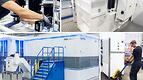 På fotot till den här artikeln syns när de står redo att skeppa ut en maskin som är utrustad med ett palettsystem som är världens största i sitt slag.